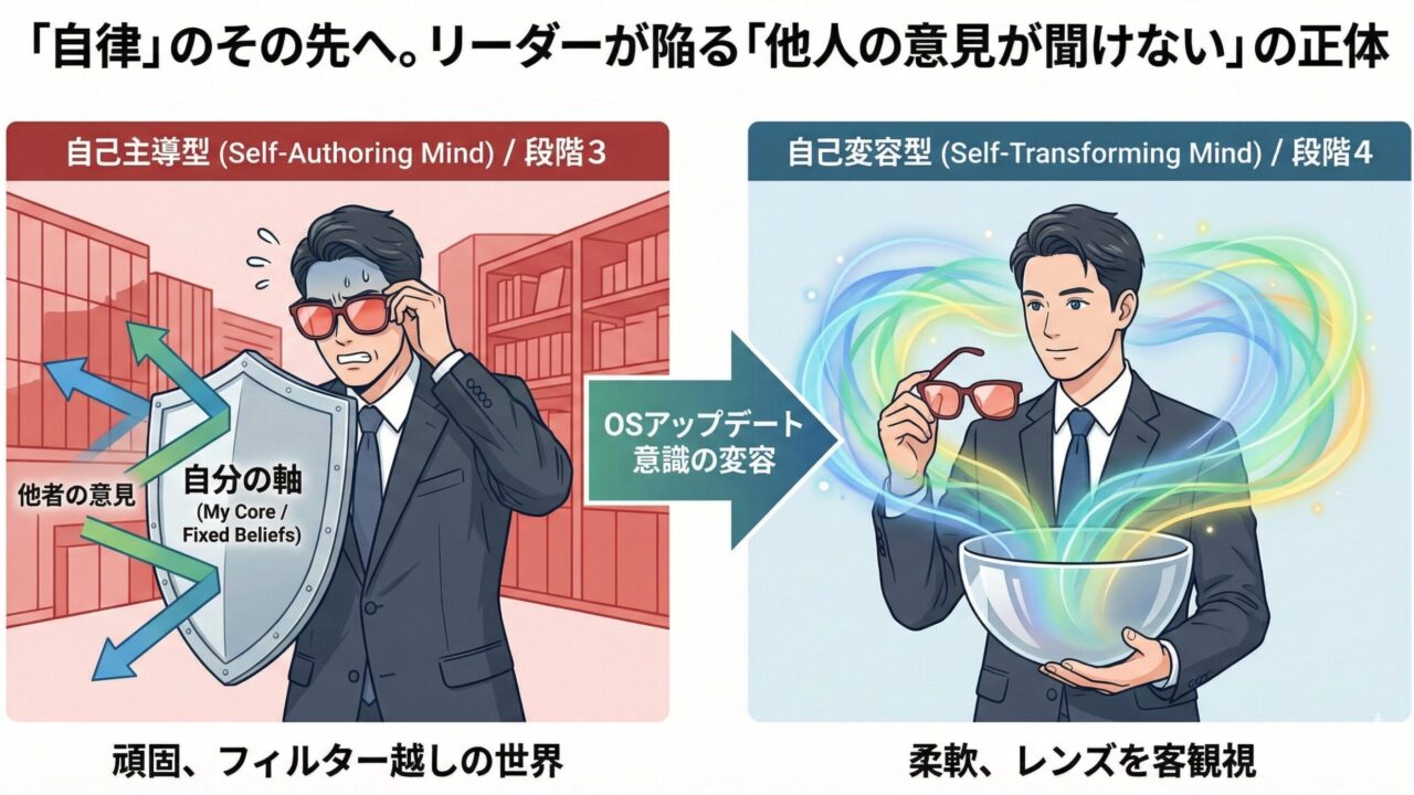 自己変容型のリーダーは、自分の信念を持ちながらも、**「自分の信念そのものが、偏った一つの見方に過ぎない」**ということを深く理解しています。